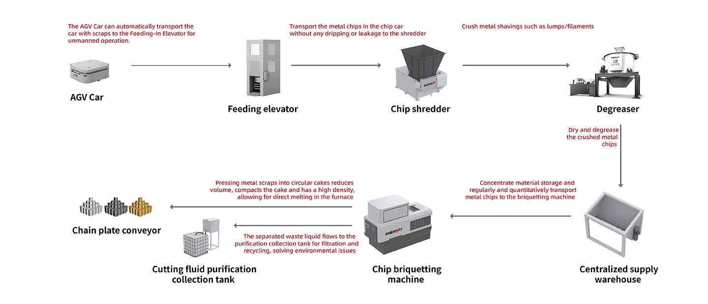 Ansteel Group, колыбель сталелитейной промышленности Нового Китая, имеет большие масштабы производства и долгую историю. По мере продолжения производства скопление железной стружки, образующейся на нескольких станках в цехе, становится все более серьезной проблемой. Это занимает значительное пространство и сопряжено с проблемами, связанными с разделением смазочно-охлаждающей жидкости и очисткой окружающей среды. Ansteel Group представила передовое решение для переработки железной стружки — линию машин для брикетирования железа ENERPAT®, позволяющую оптимизировать производственную среду и повысить эффективность восстановления ресурсов.